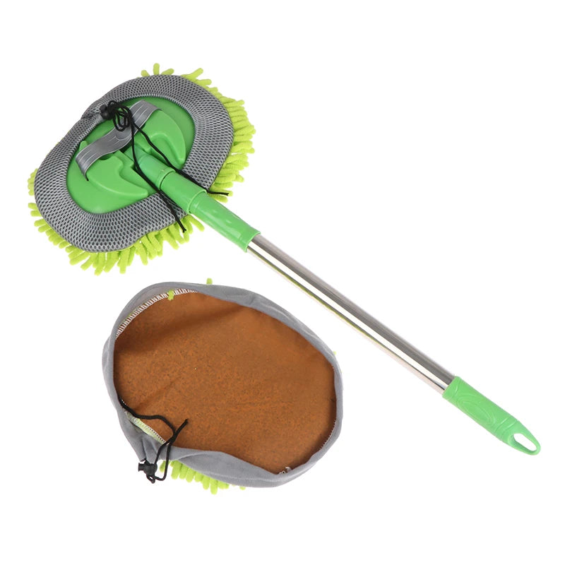 Escova Telescópica de Microfibra 2 em 1 – Lave o Carro em Minutos, Onde Estiver
